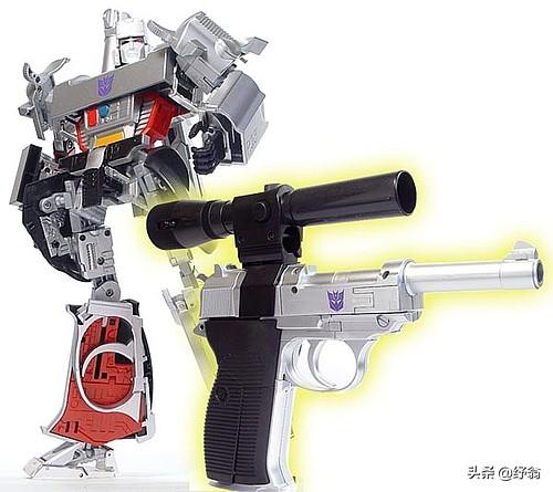 在美版98集变形金刚中,【威震天】的变形形态是一支【沃尔特手枪】。