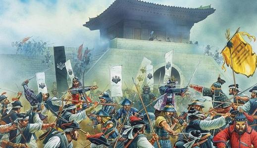 李氏朝鲜的天赋基本上点到内斗上了,一个小小的半岛国家居然分成了南人党、北人党、东人党和西人党,各种内斗久战不休,但是与此相反的是这伙人在战争上的无能,比如说一个月就能够把朝鲜首都汉城给丢了,这就历史上比较有名的万历朝鲜战争,日本人叫它文禄庆长之役,当然韩国人也有自己的叫法,不过不重要,毕竟他们又不是主角,毕竟他们嘴里的大英雄李舜臣也就是明朝联军里头的一个副将。
