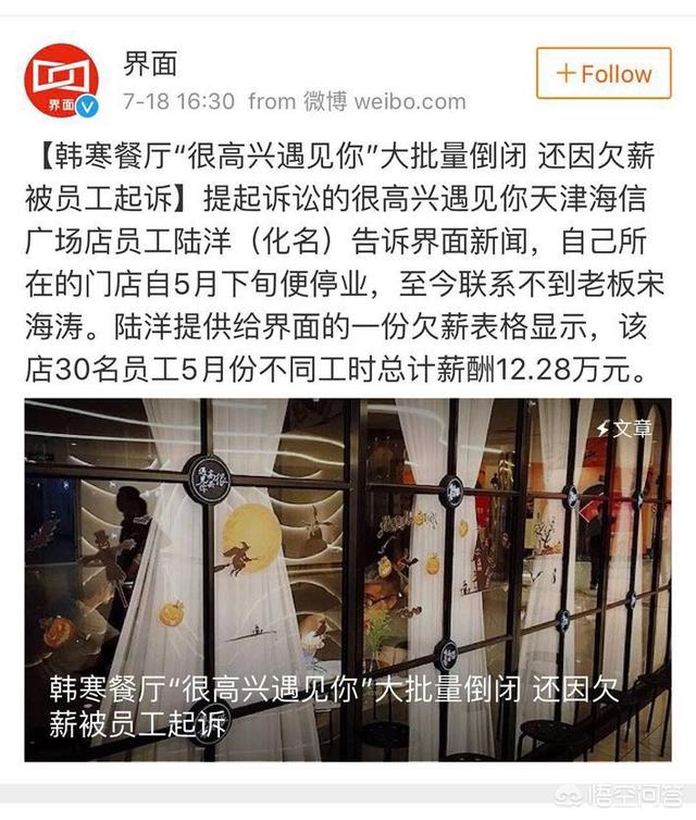 近日,韩寒的餐厅“很高兴遇见你”大批量倒闭,并被爆出拖欠员工工资,面临诸多诉讼。