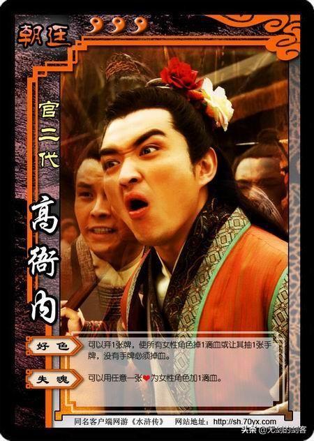 《水浒传》里高俅本是市井无赖,奈何交了好运,做了殿帅府太尉,此时的他已经不年轻了,膝下无子,于是让本家弟弟做了他的儿子。高衙内和高球还是兄弟时关系就很好,换了辈份以后,更是恃宠而骄。高衙内每日就是放鹰走狗,眠花宿柳,欺淫民女。高衙内强占林娘子不成,就迫害林冲,弄的林冲家破人亡,林娘子也上吊自尽了。此后就没写高衙内的结局,小说结局高俅还是太尉,高衙内应该还是那个浪荡子弟。