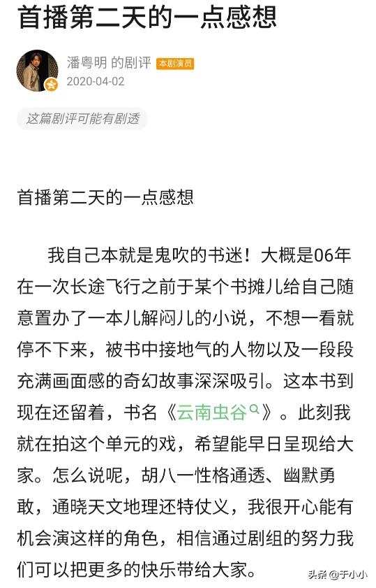 从《龙岭迷窟》开始,他就是胡八一了,不过,网友开玩笑地说他是胖八一。潘粤明真的胖了,不过,虽然他的形象略有变化,但开播就收到8.4的高评分,一天播放量超亿却是《龙岭迷窟》实打实的战绩。