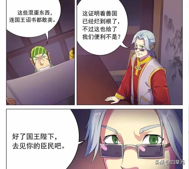 兽国改革开始很顺利,因为广方买到了诏书,而且有一个王子和他们混的熟,王子念诏书,诸侯皆从。中间他们收复了大部分领土,即将收尾时,享受胜利果实时被告知王纹耀丢失,事情开始扑朔迷离。