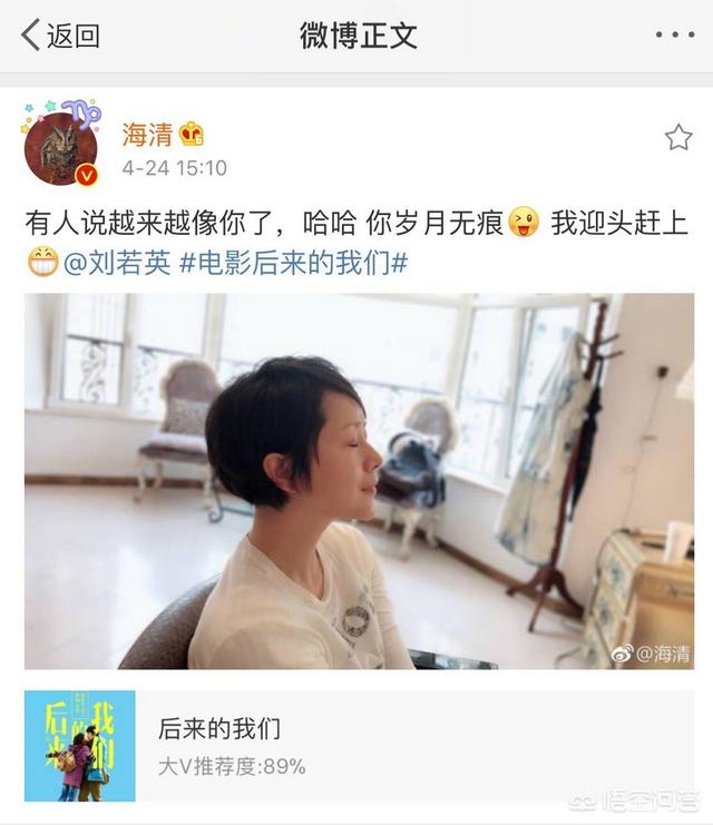 生活中的海清一直都是短发,今天减肥成功后的海清,侧颜撞脸刘若英,并艾特本人,带了一下刘若英的新作品,也是宣传的巧手。
