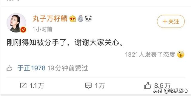 视频曝出后,本以为已经实锤,两人很可能公布恋情。没想到男方屈楚萧先否认了恋情,并且在社交平台上发的内容称“60公里提前蹲点辛苦了”暗示这波曝光是女方操作的?而随后万籽麟也发文称“刚刚得知被分手了,谢谢大家关心。”,这句简单的话颇具讽刺意味,是在暗示男方渣?更有意思的是,娱乐圈最爱吃瓜的于正也去给万籽麟点赞。有一说一,于正虽然爱蹭热度,但他每次选择的立场还挺公正(鉴于前几次大型吃瓜现场得出的结论,个人观点,仅供参考,这里不细说),这次我也觉得万籽麟挺可怜。