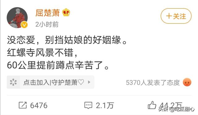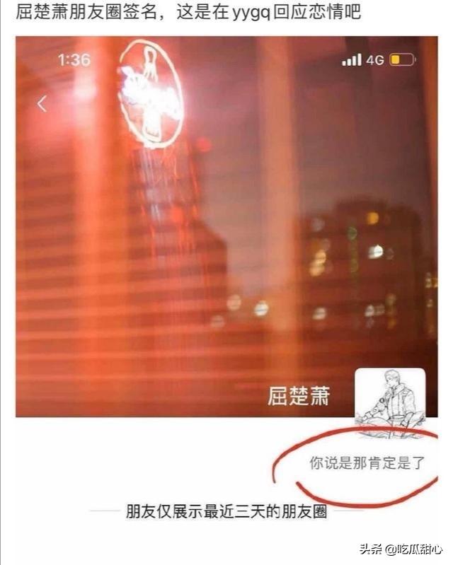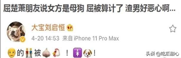 刚刚,又有网友爆料屈楚萧在朋友圈里内涵被女方算计,真真假假我们都不得而知,但我觉得不管怎样好聚好散,男方是否应该风度点,哪怕宣布分手都比说没有恋爱强一点点!心疼咖喱酱小姐姐!