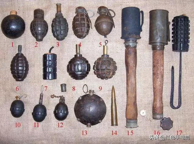 手榴弹在作战中实际的使用并不算太多,中国人除外。手榴弹说白了就是一个用手投掷的铁皮罐子,里边装满了炸药,至于后来上边各种引信就是为了投掷这个炸药罐子的时候别炸到自己。各种老式手榴弹,其实还有更土的,一战的时候,英国和法国士兵还用罐头盒装上炸药作为手榴弹。