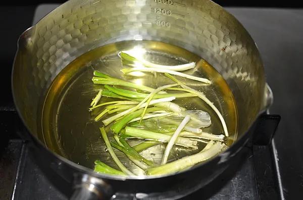 7.熬好的葱油倒出在小瓶里,余下适量加入拌好的调料汁