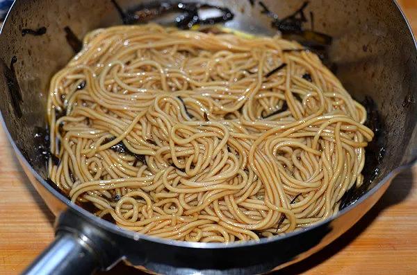10.煮好的面条捞出过水沥干水分倒入酱汁中拌匀开吃吧