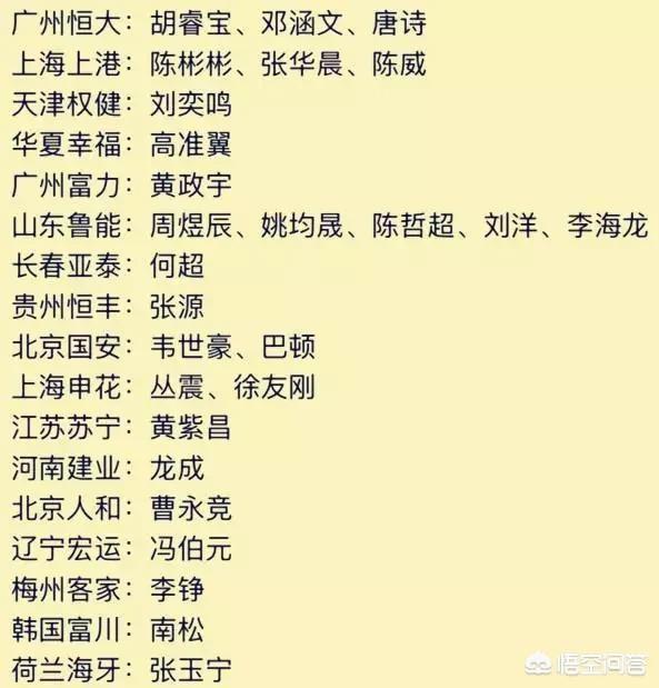 5-高准翼、19-刘奕鸣、6-姚均晟、7-韦世豪、9-张玉宁、13-黄紫昌