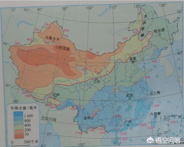 我国年降水量分布图