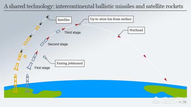 洲际导弹其实跟平时打卫星的火箭是一样一样的。都是要冲出大气层。而区别在于洲际导弹有个再入大气层过程,发射卫星的火箭没有这个。但是要改那是很简单的事情。