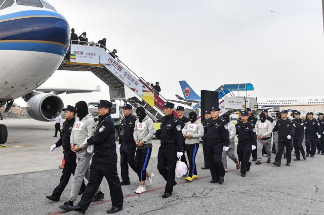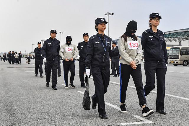 公安人员用黑头套把犯罪嫌疑人的脸给套上,这样,就很好地保护了犯罪嫌疑人的个人隐私权。