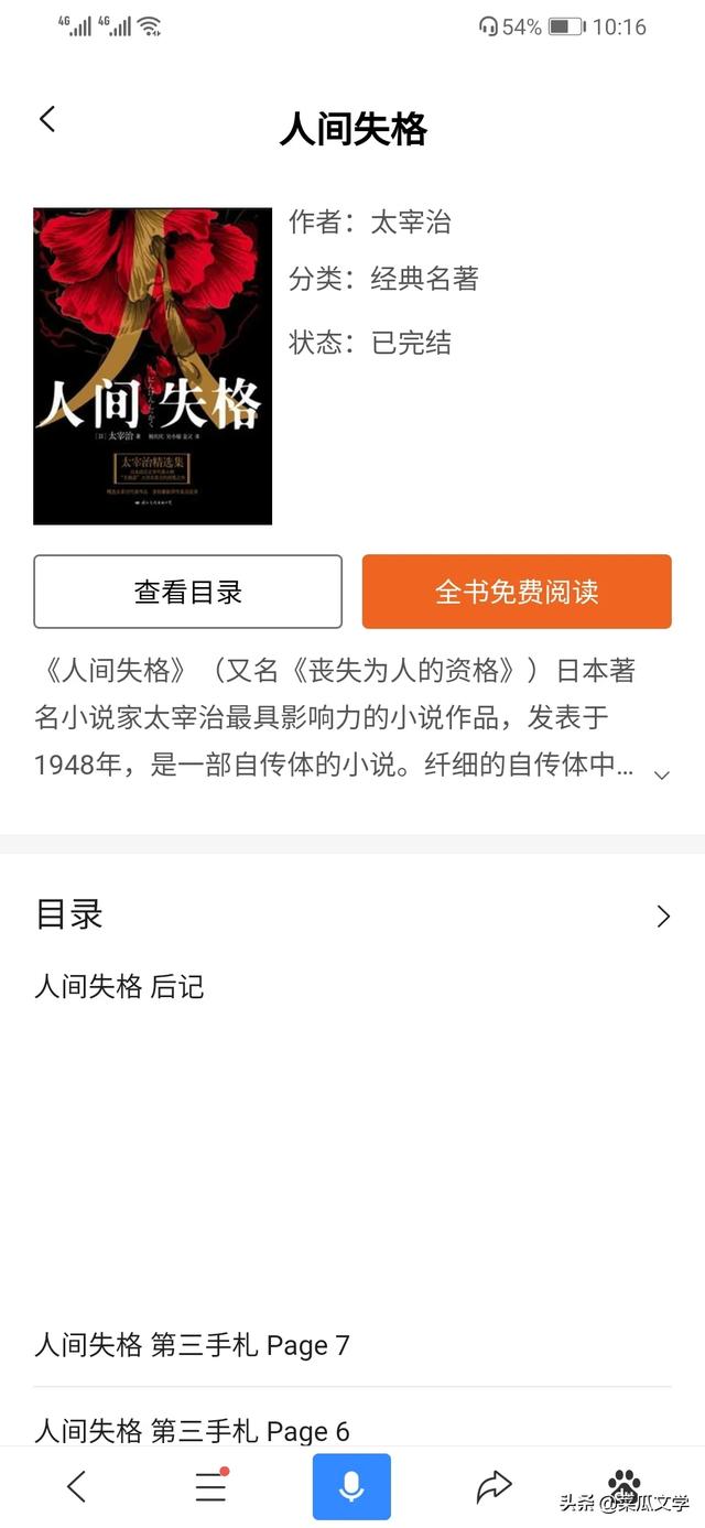 总结:我在读这本书的时候,字里行间都能感受到叶藏发自内心的绝望,这些字词之所以有这样的张力相信和本书作者“太宰治”脱不了关系,故事里的叶藏和作者的人生经历惊人的相似!