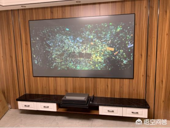 没有买过用过的请不要乱回答,误导很多人。本来不想回答,怕你跟我以前一样被误导,我客厅在一楼,光线一般,买的光峰带抗光屏幕套餐,专业数据不懂。公司买的是四万多的,实际效果跟我光峰一万六的基本一样,不放一块对比,没有好差之分。屏幕离落地大玻璃一米多,窗边就是墙,中午拉一米多的窗帘挡光,其他时间很清晰。怕太亮伤眼睛调的护眼模式,看四个小时电视眼睛不累,100寸的幕布比50多寸的LED电视护眼。配上好的硬屏,亮度清晰度绝对可以。还有看好电视柜尺寸,我的是美式比较宽大,刚好放到边。