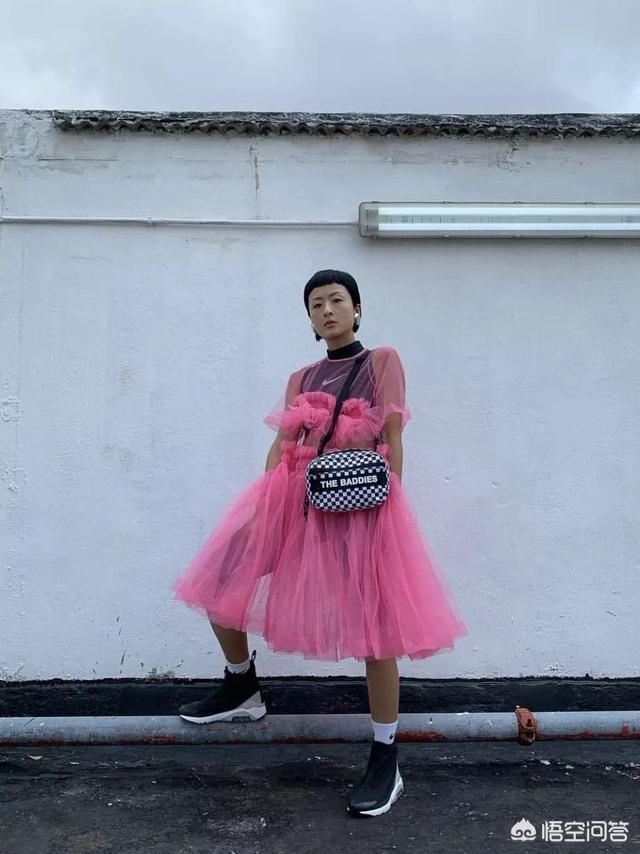 利用高领的 Nike打底和时下最流行的骑行短裤,把别人眼中的死亡芭比粉裙,抬手就变成了帅气的女 soldier风!这样的混搭真的有写“徐濠萦的名字”!