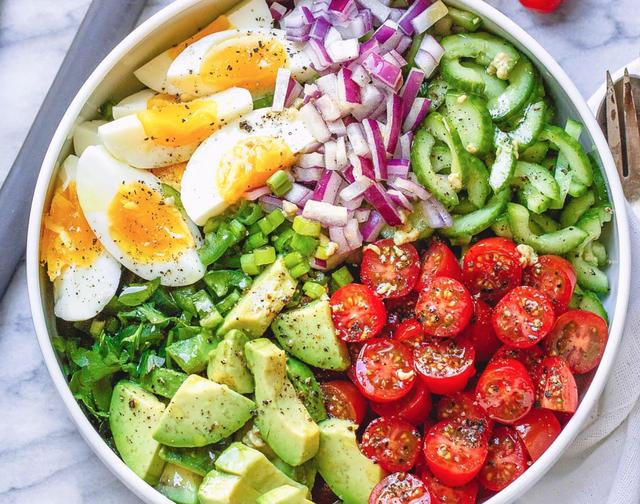 或者,牛油果也可以做沙拉,和奶酪块、西红柿等蔬菜搭配在一起,加点酱汁,吃起来又清爽又美味。