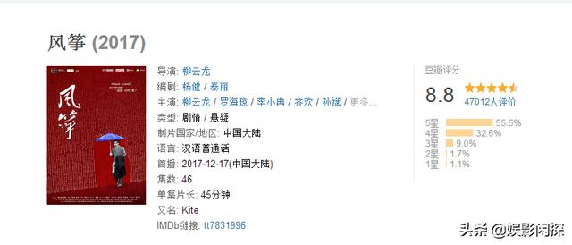 另外《风筝》在评分上输给了《潜伏》,并不是因为《风筝》这部作品在哪儿出了什么岔子,其主要原因还是因为《潜伏》太过于优秀了,纵观《潜伏》在这十来年里的表现,他已然成为了一部经久不衰的好作品,不说前无古人吧,至少后来者想超越《潜伏》这部作品,其难度还是不小的。所以,《风筝》输给《潜伏》并不冤。
