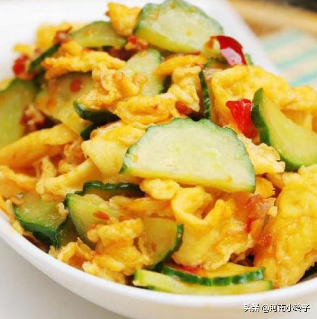 先打两个鸡蛋,然后把黄瓜切片,再切点儿青辣椒和红辣椒。鸡蛋搅匀。先把鸡蛋煎了,然后出锅,再放一点油,把青辣椒,红辣椒,放进锅里煸炒,然后放黄瓜片,加盐和鸡精,把黄瓜炒两遍,再把煎好的鸡蛋倒进去。翻炒就可以出锅了。辣椒是随人而定。有的喜欢吃辣椒就放不喜欢吃辣椒的就不放。这是我个人的意见。