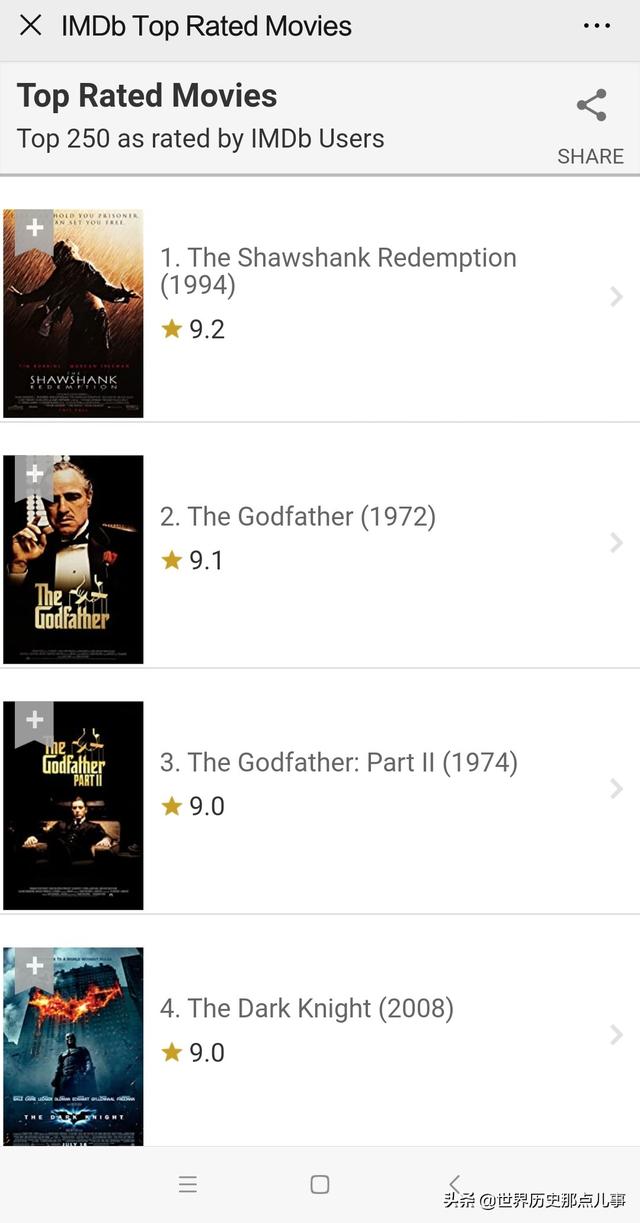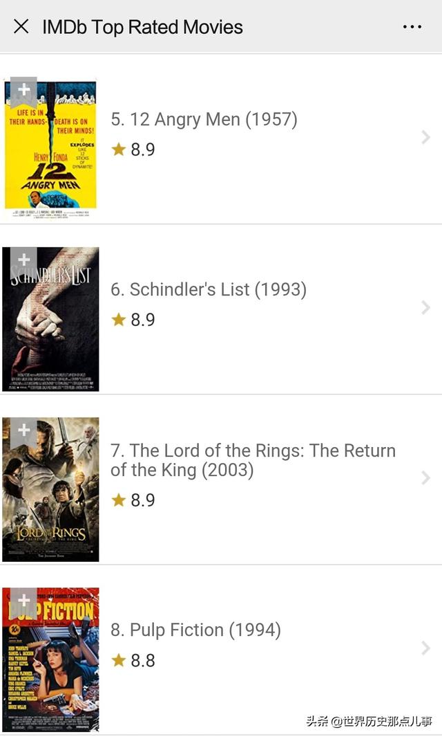 综上所述,在IMDb前10位的榜单中,我所看过的电影有6部。其中《教父》1和2,以及《12怒汉》《低俗小说》都没看过。以后争取找机会都看一下。鉴于提问者没有让介绍影片的内容和观影感受,在这里就不展开了。我的回答主要是给大家介绍一下IMDb的前10位榜单。你又看过其中的几部呢?欢迎留言评论。