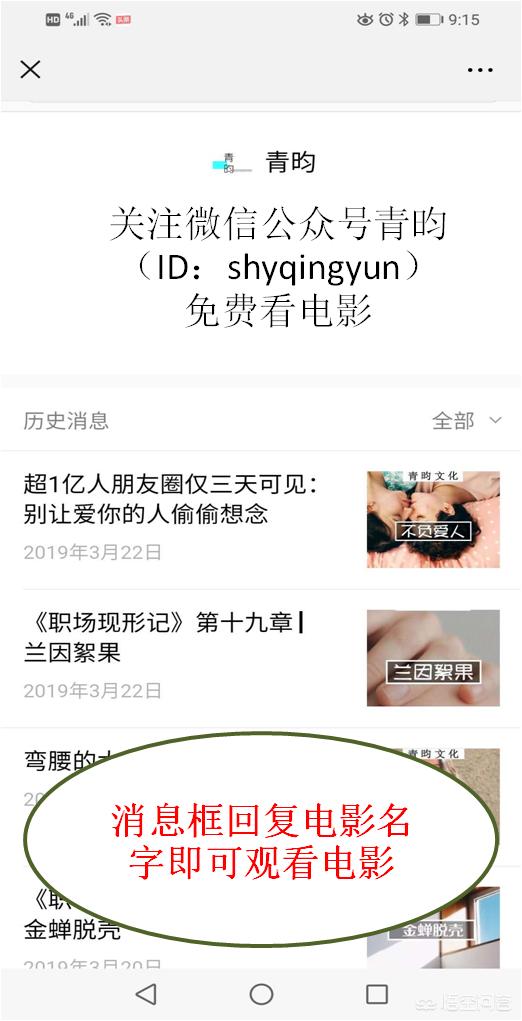 在这里给大家推荐一个可以看到全网所有VIP电影的方法,非常简单,30秒就能学会,关注微信公众号:青昀,在后台发送电影的名字,就可以看到全网所有的VIP电影了,在这里,只有你想不到的,没有它提供不了的,有时间可以来试试哈!