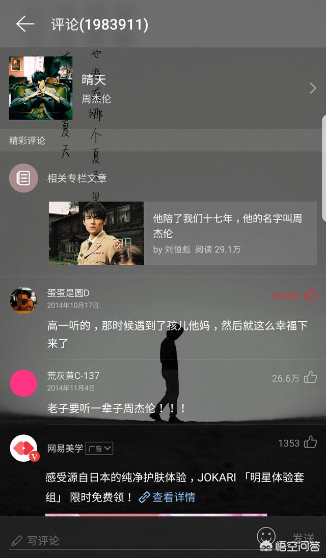 《晴天》能在网易云音乐登上评论数之首并不奇怪,这足以说明优秀的歌曲可以经得起时间的考验,也能经得起群众的检验,经典之所以经典,是因为哪怕青春已经离你很远,你也依然能感受到它在你心里种下的梦想。