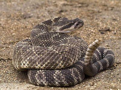 响尾蛇是一种管牙类毒蛇,属于蝰蛇科响尾蛇属,一般体长约3~3.5米。响尾蛇尾部有尾环,遭遇敌人时,会迅速摆动尾环,发出清脆响声,给出敌人警告。