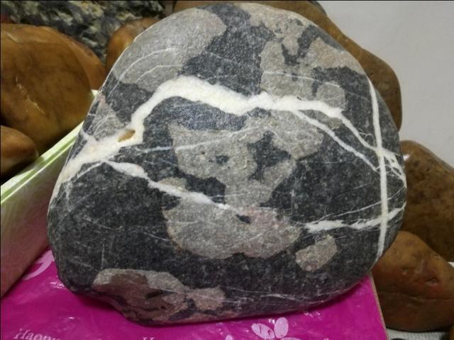 我曾在河道的水边拣了一块有老鼠的生肖石头。说句实话,拣到这块石头的时候,我都怀疑这石头的图案是人工制作的。可我望望河道四周,这里杂草丛生,离山里的村庄也还很远。除了我这个石疯子,谁也不会踩着水来到这河道的拐弯处的。