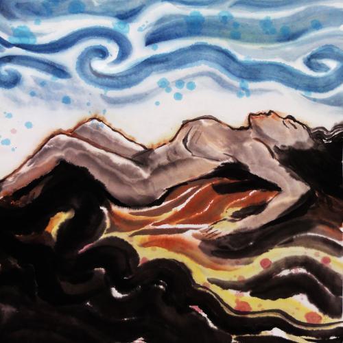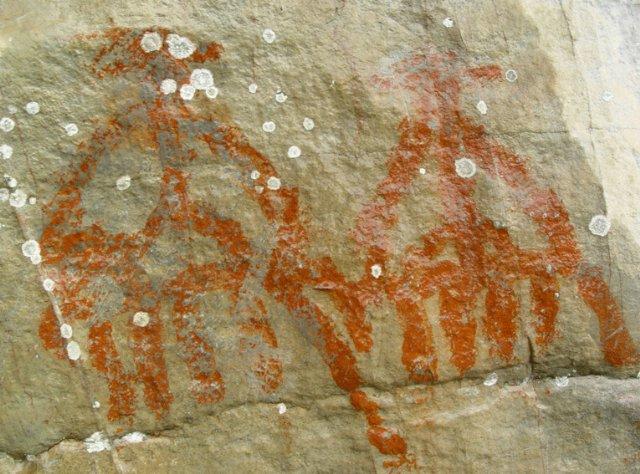 从上身的形态来看,应该是一男一女,他们与现代人类的长相有很大的区别,最大的不同他们有六只手臂,他们依偎着蠕动着身躯向前行进着,耸立在这片荒蛮的世界之间,他们对望一眼相视一笑,看起来他们很满意,随后他们的蛇身就像藤蔓一样盘旋在了一起,越贴越紧……