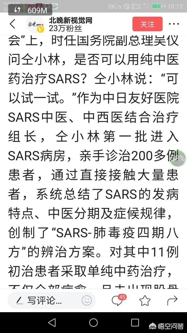还有北京的纯中药治疗非典型肺炎的报道。