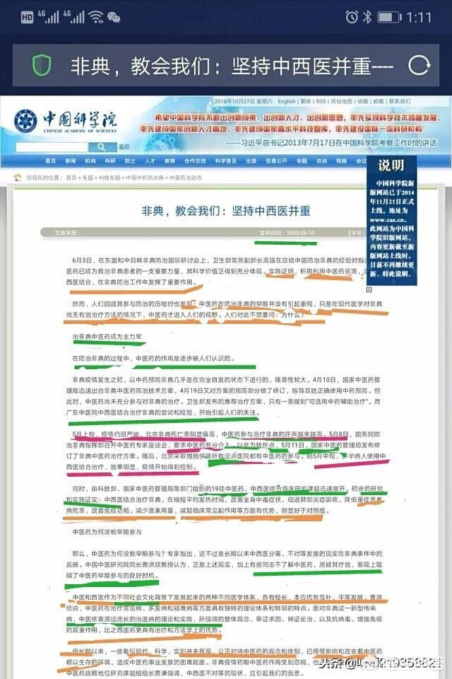 先看权威部门"中国科学院"对中医药参与非典防治的肯定的总结结论,其中分析了为什么非典疫情早期中医药没有参与??就是因为长期的制度等等大环境对中医药不利甚至(刻意)误解,(打AB压)。
