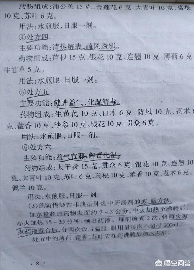 下面两页,就是按传统中医药方法推荐的6个参考处方,供具体辨证选用。