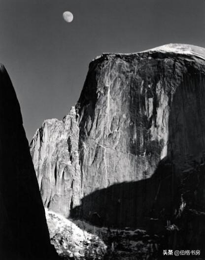 安塞尔.亚当斯接受《纽约时报》邀请拍摄约塞米蒂国家公园并以此而出名,人们总是津津乐道亚当斯风光摄影的精美,摄影人也对亚当斯摄影的精湛技艺叹为观止,却很少有人关注亚当斯摄影的主要对象约塞米蒂国家公园当时的人文自然环境。提到约塞米蒂国家公园,就不能绕过约翰缪尔。尤其是约翰缪尔与当时一位林业主管部长的一场论争,官方主张开发或适当开发森林资源,而缪尔坚决反对任何开采行为,他主张保留约塞米蒂原有的自然景观,这也是媒体邀请亚当斯拍摄约塞米蒂风光的缘由之一。与其说亚当斯吃苦耐劳的毅力和精湛的摄影技艺如区域曝光以及F/16光圈理论成就了亚当斯的摄影风格,不如说是约塞米蒂的绝美风光成就了亚当斯,或许是他们彼此成全了对方,缪尔的执着与亚当斯的美图最终征服了那些打算开发约塞米蒂的人们的想法从而使约塞米蒂国家公园得以完美保留至今。图为亚当斯摄影作品选:酋长岩山峰之月。酋长岩山峰是全世界攀岩者的圣地。向约翰缪尔和安塞尔亚当斯致敬!