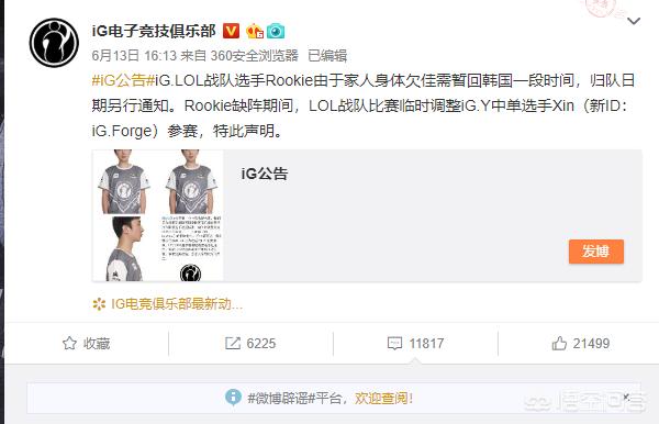 IG官博直播公布Rookie因为家人原因需要回国一段时间,Rookie可以说在IG服役了四年了,算是IG最稳定的Carry点,在IG目前最低谷的时间里,Rookie的回去可以说是让IG雪上加霜,新中单和新辅助这两个点需要磨合,而磨合又需要时间,以IG目前的状态磨合肯定是出了问题的,IG再不好好调整的话进季后赛可能都会有点难。