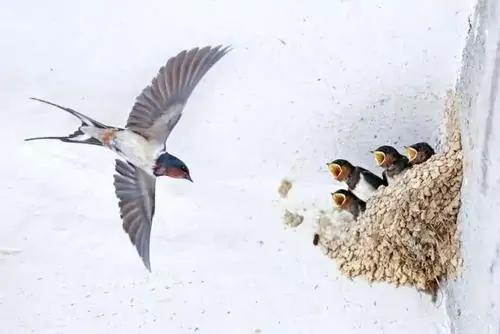 不吃你家食,不喝你家水,灭虫保庄稼,借房躲雨水。这是村民对小燕子的歌谣,充分表明了大家对益鸟燕子的喜爱之情。传说燕子借住的家宅必须一要朝南向,春暖乍寒,坐北朝南的人家地理位置极佳。二要选择一个和睦之家,如果一家之人每天鸡飞狗跳,燕子是决不会降临的。所以燕子垂青的人家一定是不错的家庭