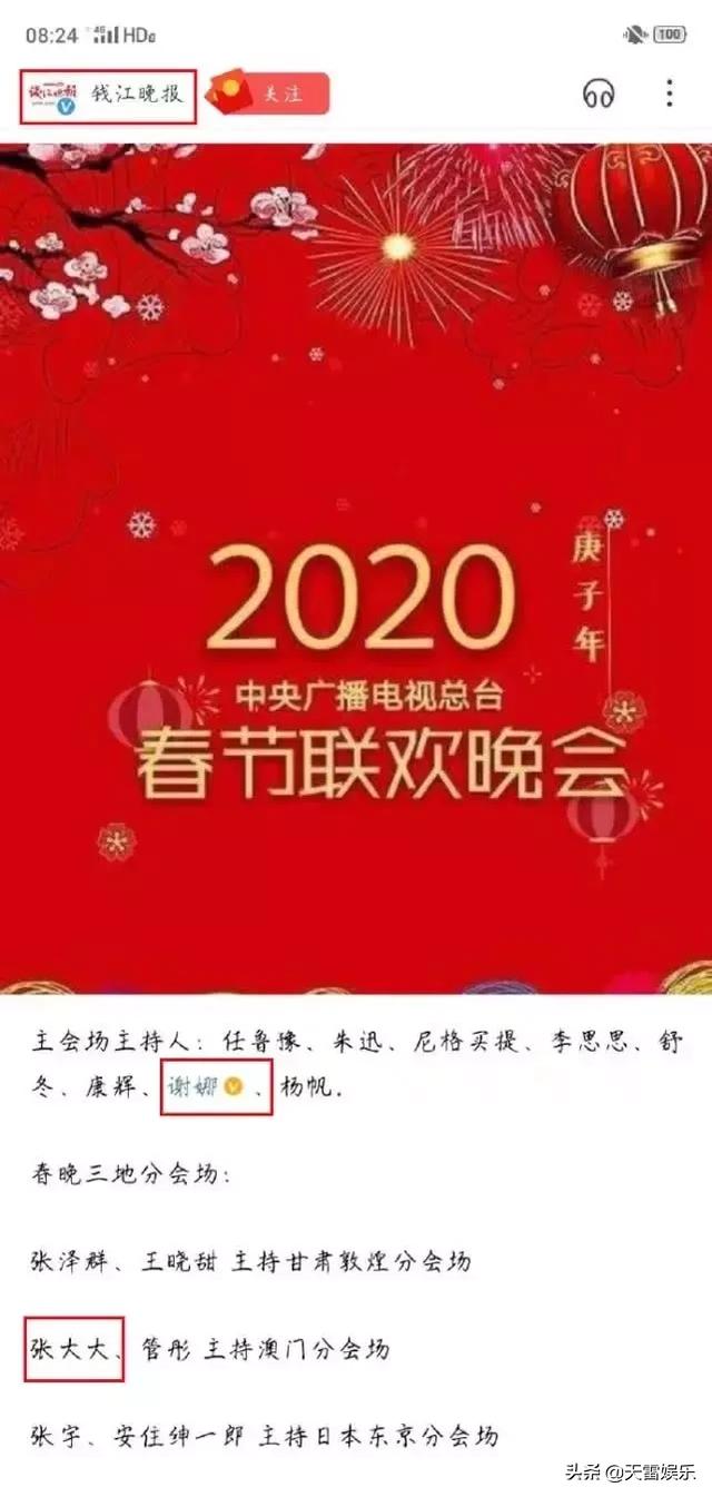 张大大去澳门分会场主持?这才是节目单中最恐怖的地方,张大大虽然跟娱乐圈很多女星私交甚笃,但是他的形象、他的情商、他的随机应变能力都高度存疑,让这样的人去主持一台阖家团圆的春晚,即便只是分会场,依旧是会让很多人心里“添堵”的事情,我相信春晚导演组不会这么无知。