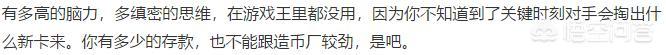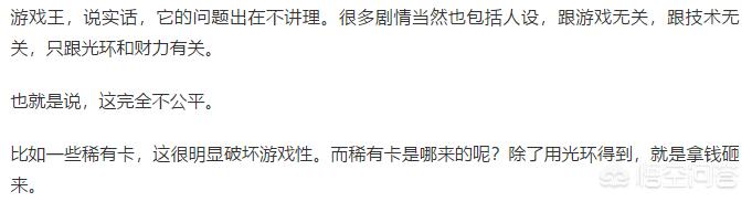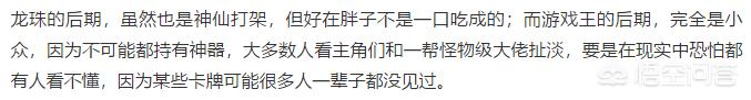 看到这段话我就当做他说的是DM最后的埃及剧情吧,但是说实话,那段剧情已经和打牌关系不大了,基本算那种召唤能灵能之类的热血动漫而已,那么这种设定有什么问题?最类似的就是数码宝贝,不就是几个人带着数码宝贝,其他吃瓜群众看神仙打架,主角拥有的数码宝贝更IMBA,所以他的意思是数码宝贝这部动漫有问题而不是游戏王吧,这么一想我心里舒服多了。还有某些卡牌很多人一辈子没见过,实卡本身的确很多人没见过,但有什么影响?你龙珠你就看过龟派气功还是元气弹了?而且即使我没见过,那些卡真实存在,只不过我没买、没买到或者买不起而已,你的界王拳呢?