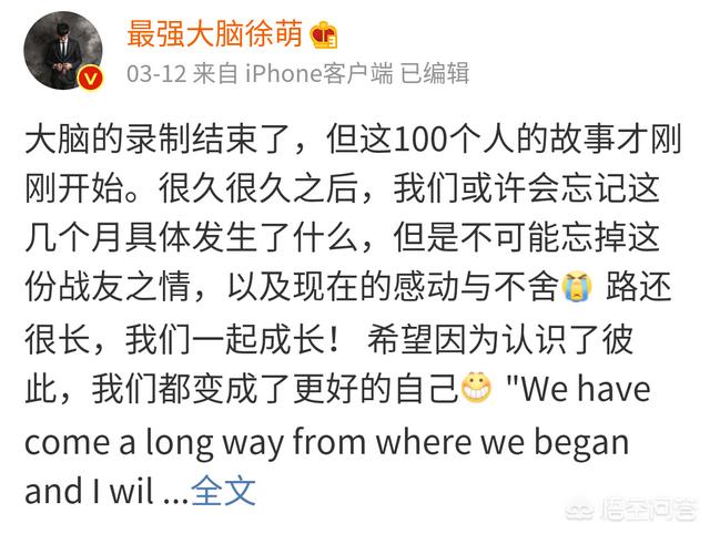 徐萌参与的录制结束了,很多人也会有所失望吧,我在节目中看到的他很捧,答题很精彩!虽然最后没进入到最后的总决赛,也挺可惜的