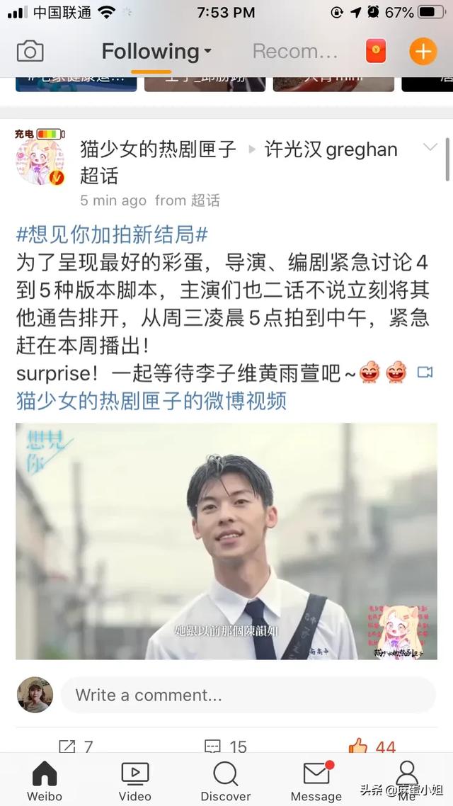 我在看《想见你》第23、24集的时候,我感觉陈韵如真的太可怜了,她只是想要李子维能够爱她,世界上能有一个照亮她内心懂她的人,可能很多人会讨厌真正的陈韵如,因为她假装是黄雨萱,并且呆在李子维的身边,而黄雨萱因为子维的去世,想回到1998年,穿越陈韵如的身上找到李子维,不让悲剧再次发生,但是黄雨萱并没有回到1998,而真正的陈韵如却做回了自己,并且假扮黄雨萱呆在李子维的身边,陈韵如想象着黄雨萱的性格模仿着黄雨萱,和李子维一起去海边、一起逃课、一起做从来都没有做过的事情,但是身边的李子维却发现了陈韵如的异常,李子维发现陈韵如的字变得不一样,还有雨中奔跑的陈韵茹不是原来的模样,李子维去询问陈韵如,但是陈韵如却隐瞒了李子维,但李子维内心还是想要找到真正的黄雨萱,他不再和陈韵如一起上学放学,没有再去找陈韵如,而陈韵如又开始变得阴沉,而当陈韵如回到班的时候,班里的女同学对她说,陈韵如你不要千万再回到以前的那种性格了,陈韵如就说我以前的性格不好吗?同学说你以前性格真的让人很讨厌,让人不敢接近,陈韵如说她也讨厌以前的自己,慢慢的陈韵如的内心很崩溃,她在世界上唯一的美好都没有了,因为陈韵如觉得在世界上只有李子维是给她带来阳光的人,世界上没有一个人懂她,李子维使她最后能够留在这个世界的理由,但是这个理由也破灭了,我觉得后面的剧情陈韵如应该会选择自杀,并不是莫俊杰杀死了她,也不是班长,是陈韵如自己,因为在陈韵如的世界里,陈韵如也讨厌自己,她觉得所有人都讨厌自己,没有人喜欢她这种性格,她曾经说过,她并不喜欢这个世界,直到遇到了李子维,她才对世界有了憧憬,可是现在李子维却不想再见她,她所有的希望都没有了,让她失去了继续活下去的理由,陈韵如只是一个活在自己世界的人,她不曾去伤害任何人,她只是想要有一个爱的人也能够爱她,而李子维照亮了她的内心,让她的内心有一个支撑,我觉得陈韵如的性格并没有不好,其实性格是没有好坏之分,每个人都有自己内心的世界,不想被别人破坏,我们能做的就是不去评价别人,做好自己的事情,希望是世界上的每一个人都能够好好的爱自己,珍惜自己[心][心][心][心][心][心][玫瑰][玫瑰][玫瑰][玫瑰][玫瑰][玫瑰]