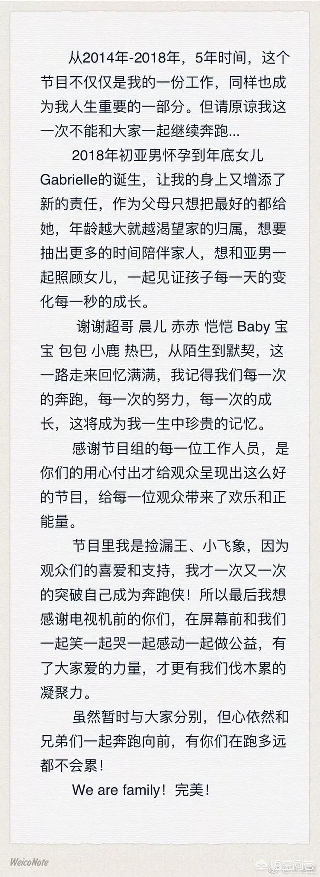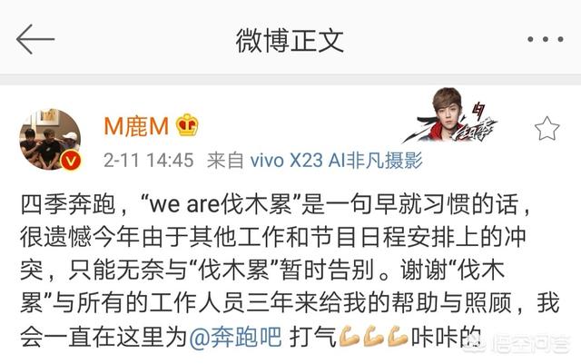鹿晗虽然不是最初的成员,但也一起奔跑了四季,是大家心中的小鹿,family中的一员!小鹿也也发博表达了自己的不舍。