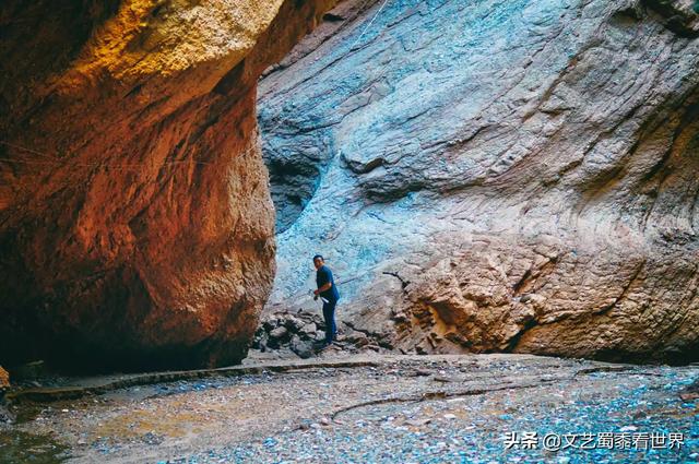 这张照片拍摄于2018年6月,也就是前文所说的,泥石流过后的那天早上。那个早晨库车天山大峡谷安静极了,我们感觉整个大峡谷里只有我们两个人,脚下是泥石流过后留下的泥泞不堪的峡谷路面,大峡谷在暴雨过后的朝阳下显得更加的神秘和美丽,那一天,天山大峡谷把最美丽的一面呈现给我们,我们也因此心满意足。