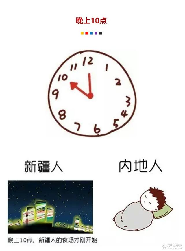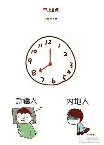 记得有内地的朋友来新疆很早起床去吃早饭,店铺都没有开门,他感到很奇怪,为什么新疆的店铺都那么晚开门,也太懒了,生意都不做了,我们新疆的朋友赶紧给他解释,他才知道自己闹了笑话,并不是新疆人懒,而是时差的原因。