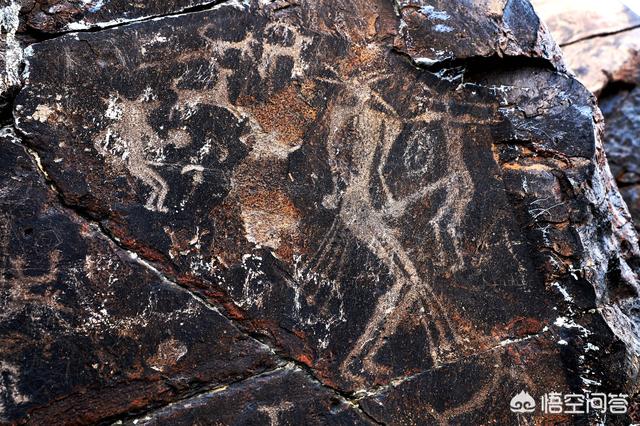 下午3点左右,我们一行开始返回游玩。在加勒帕克塔勒村口离开Y387道向北行驶约2公里,来到第二个景区——巴尔达库岩画群。岩画距今4000年左右,反映突厥族先民对生殖的崇拜,希望族人兴旺和放牧、生活、娱乐的场景。与唐家石门子岩处于同一时代,同类内容,但与其相比,画面保存更好,更加清晰。此景位于山的最边缘绝壁上,乱石林立,没有人为道路,拍照要十分小心。