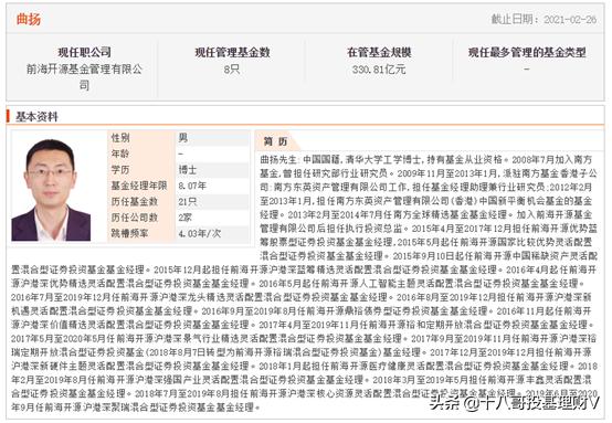 曲扬,清华大学博士学历,在基金界被称为十项全能选手,现任基金公司:前海开源基金管理有限公司。