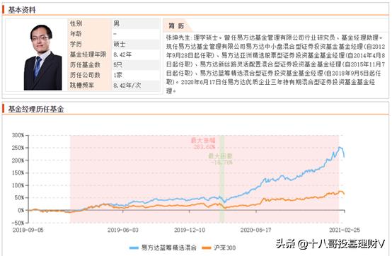 在近三年所有偏股型基金中,曲扬名列同类基金经理第一名,最高收益率287%;
