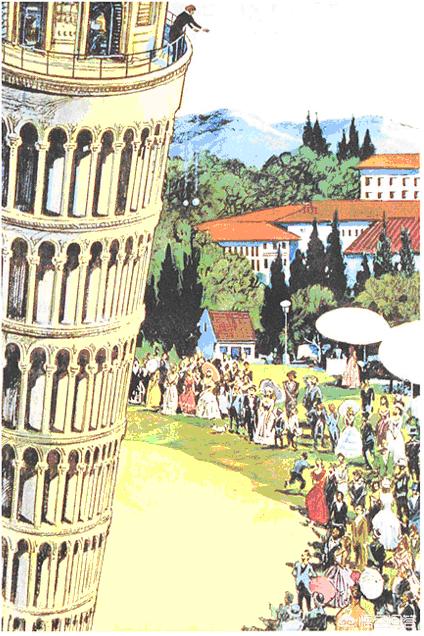 图示:伽利略的比萨斜塔实验,被认为是现代科学的开端