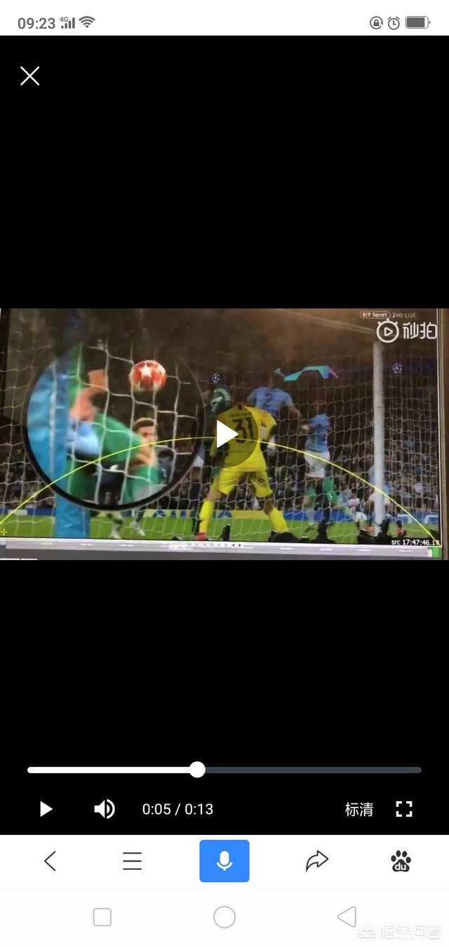 这个角度截出的画面好想没有多大意义,关键是身后的拉波尔特已经两手伸出去了,按正常推算,拉波尔特的手指已经触碰到皮球边缘,但是视线受阻,我只能这么猜测,接下来我要放大招了。