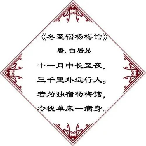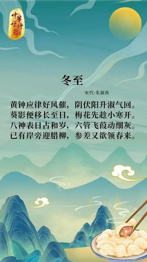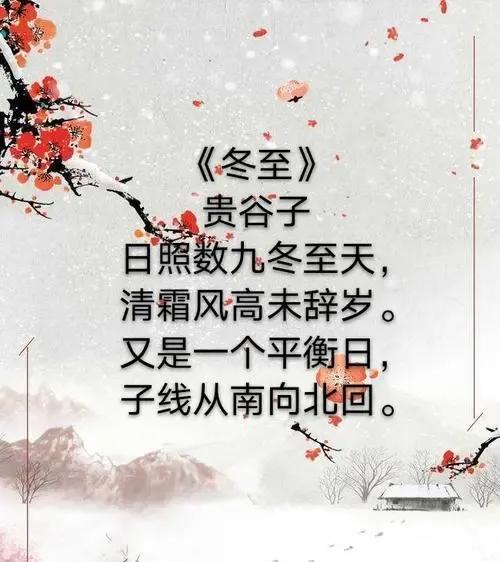 正因为冬至这个节气特别重要,因而,围绕着冬至节气,有了许多脍炙人口,流芳百世的诗词,例如,唐代杜甫的《冬至》“冬至阳生春又来”、白居易的《邯郸冬至夜》“邯郸驿里逢冬至”;宋代的陆游《辛酉冬至》“家贫轻过节”、梅尧臣的《冬至感怀》“一衰复一荣” 等等,至今读来受益匪浅。
