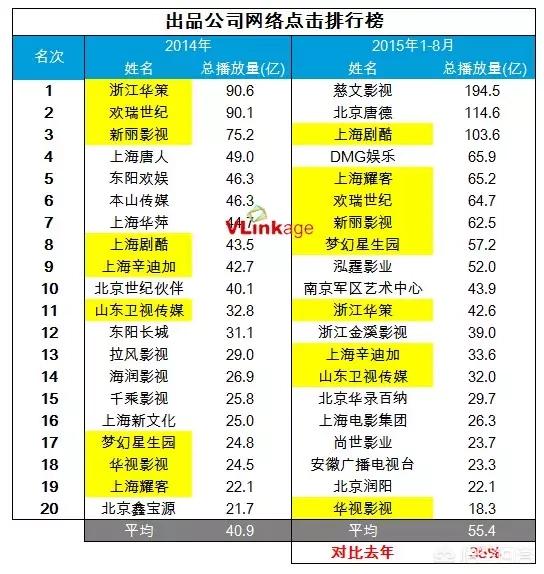 3、较之去年,出品方整体收视在下滑,网络点击增幅明显。