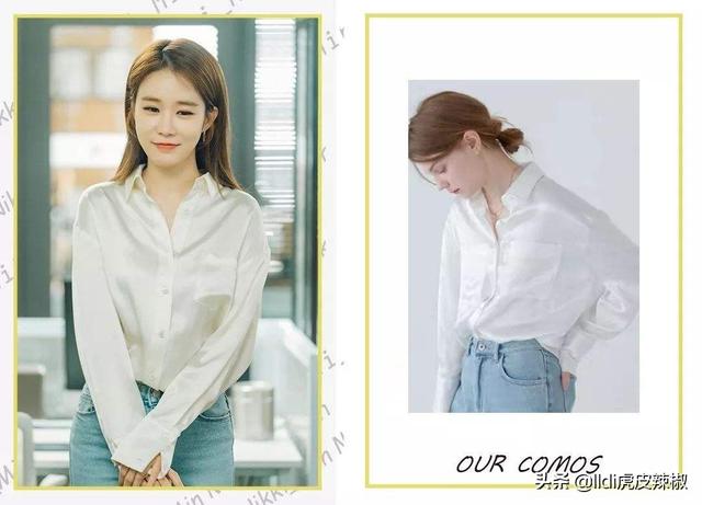 能很好的体现职业感的,当然还有白衬衫啦,平时上班,大部分都是白衬衫吧,我们看看女主的穿搭小心机,她的同样是穿白衬衫,但是款式略宽松,没有传统白衬衫那么贴身,稍微宽松一点,体现出了一丝慵懒的感觉,但又没有很明显,上身松下身就得紧一点。女主角下半身搭配淡色牛仔裤,职业又不失活泼,整个人看起来十分元气。