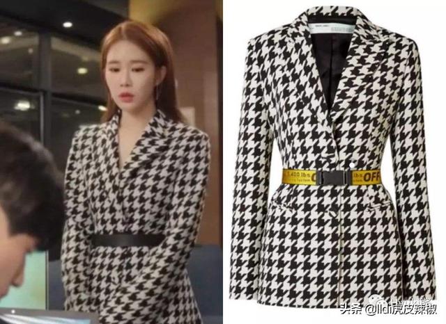 我们看看这件衣服,黑白格的中长款外套,显得十分职业,中间的腰带起到了很好的修身作用,职业感和休闲感兼具,两者都没有太重的痕迹,十分巧妙。